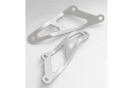 R&G Racing met au point une large gamme d’accessoires innovants et fonctionnels. Élégants et résistants, les produits R&G Racing agrémentent tous les organes de votre machine. En aluminium anodisé argent, ces pattes de fixation permettront de remplacer les supports de repose-pieds arrière pour un usage racing monoplace.