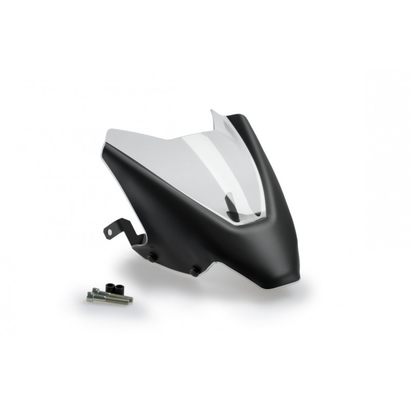 Avec ses dimensions de 281 mm de hauteur et 235 mm de largeur, cette bulle sport est 40 mm plus haute que les compteurs, assurant une protection efficace contre le vent tout en conservant un style compact et affûté. Son épaisseur de 3 mm garantit robustesse et durabilité, même à haute vitesse.