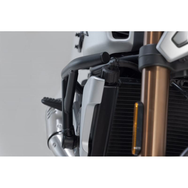 Les crash bars Sw-Motech ajoutent une couche de sécurité supplémentaire au réservoir et au carénage, se fondant parfaitement dans le style de la moto tout en maintenant une garde au sol optimale. Les fixations sur mesure permettent un montage sûr et simple aux points de fixation d'origine. De plus, elles peuvent servir de points de fixation pour des accessoires tels que des feux supplémentaires ou des caméras de type GoPro.