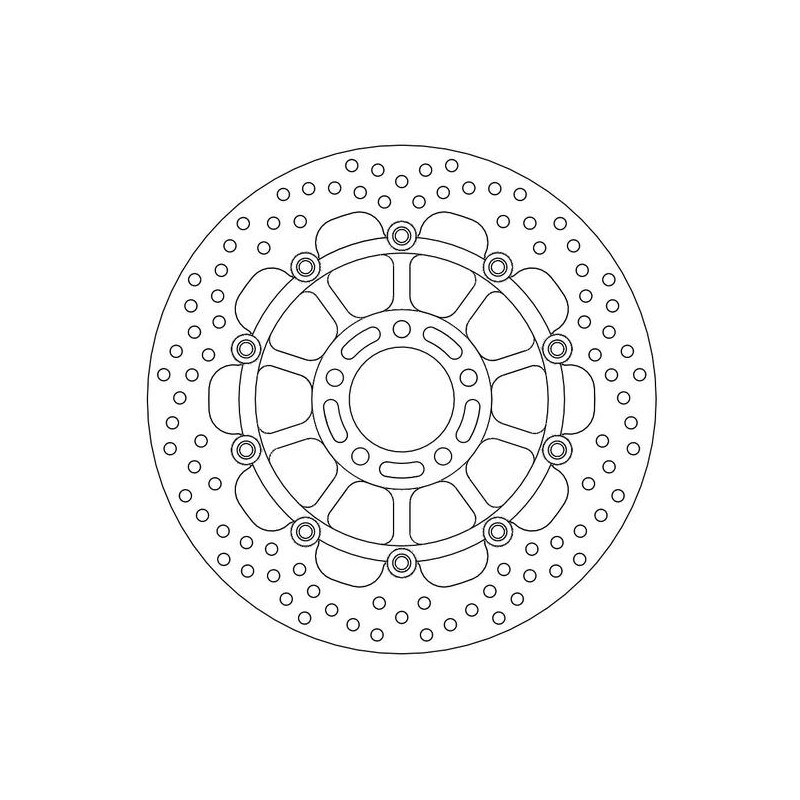 La taille et le positionnement exacts des trous d'aération assurent une dispersion égale de la chaleur sous une contrainte thermique élevée. Ce type de disque de frein existe également en version Racing. Pour de meilleures performances, vous pouvez utiliser des plaquettes de frein Moto-Master.