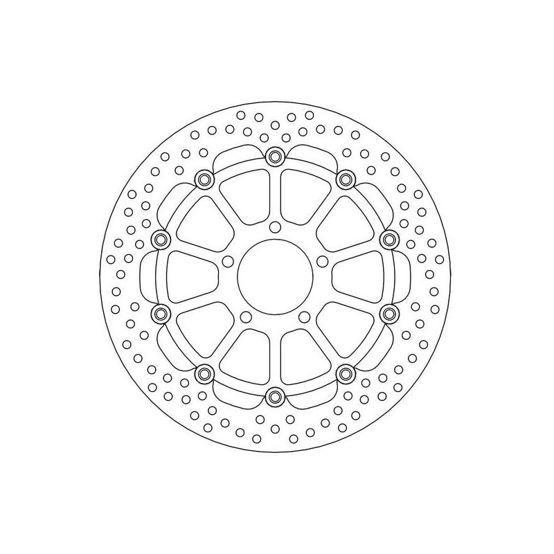 La taille et le positionnement exacts des trous d'aération assurent une dispersion égale de la chaleur sous une contrainte thermique élevée. Ce type de disque de frein existe également en version Racing. Pour de meilleures performances, vous pouvez utiliser des plaquettes de frein Moto-Master.