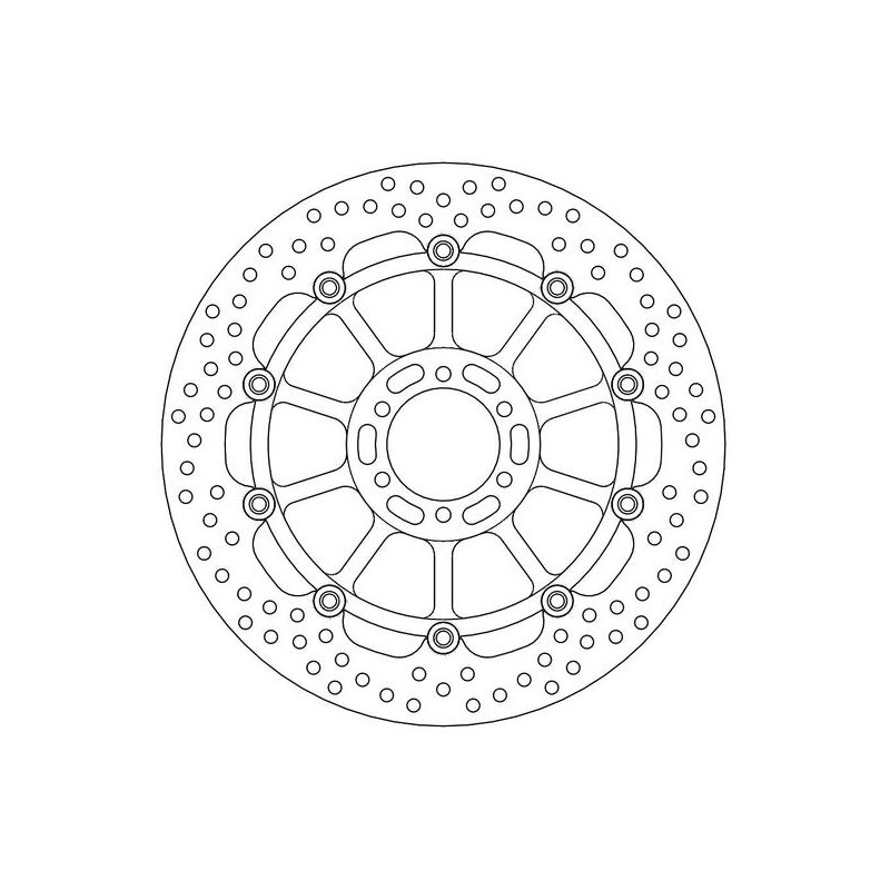 La taille et le positionnement exacts des trous d'aération assurent une dispersion égale de la chaleur sous une contrainte thermique élevée. Ce type de disque de frein existe également en version Racing. Pour de meilleures performances, vous pouvez utiliser des plaquettes de frein Moto-Master.