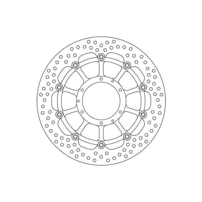 La taille et le positionnement exacts des trous d'aération assurent une dispersion égale de la chaleur sous une contrainte thermique élevée. Ce type de disque de frein existe également en version Racing. Pour de meilleures performances, vous pouvez utiliser des plaquettes de frein Moto-Master.