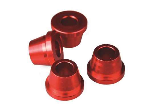 Les douilles en aluminium anodisé Scar sont usinés par commande numérique et permettent un contrôle plus précis que les entretoises en caoutchouc d'origine.