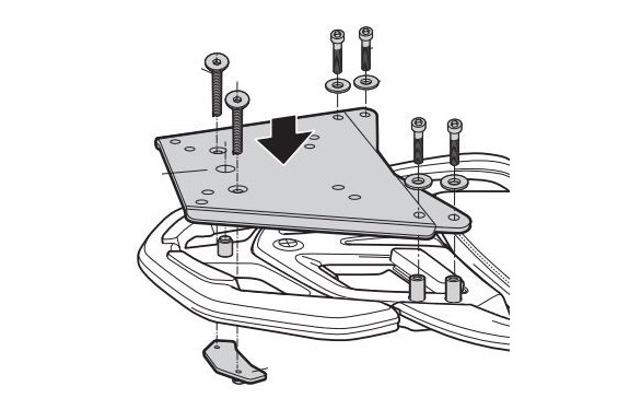 Pour monter le top case sur la moto il est nécessaire d'ajouter la platine comprise dans la valise SHAD à ce kit.