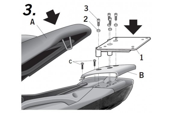 Pour monter le top case sur la moto, il est nécessaire d'ajouter la platine comprise dans la valise SHAD à ce kit.